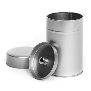 - Envases redondos: Estos envases metálicos clásicos son ideales para almacenar granos de café y hojas de té sueltas. Pueden ser sellados herméticamente para mantener la frescura del producto.