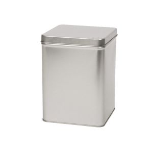 27. Muestra Envase metálico cuadrado de 750 gr Al: 174 mm An: 128 mm La: 128 mm