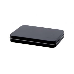 2. Muestra Envase metálico tamaño A6 negro Al: 23 mm An: 165 mm La: 110 mm